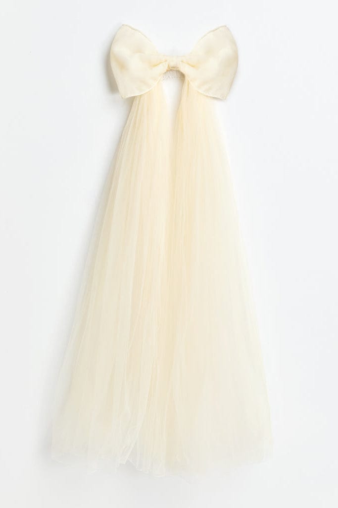 Le voile nœud Elisa est un véritable spectacle, avec son nœud en tulle surdimensionné et multicouches, pour une allure inoubliable. Doté d'un fil métallique intérieur pour une silhouette parfaitement sculptée et d'un peigne argenté dissimulé pour un maintien parfait, ce voile n'est pas qu'un accessoire, c'est l'événement principal.