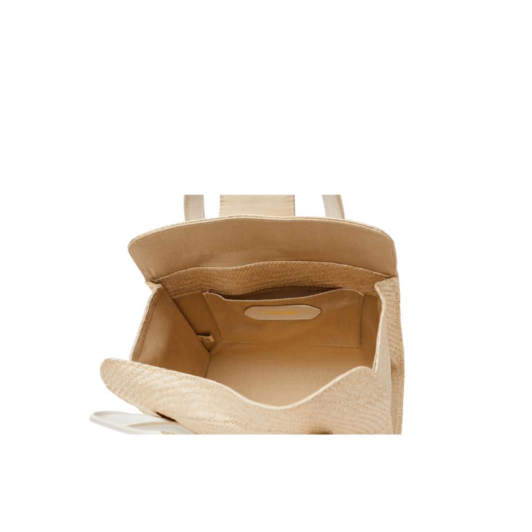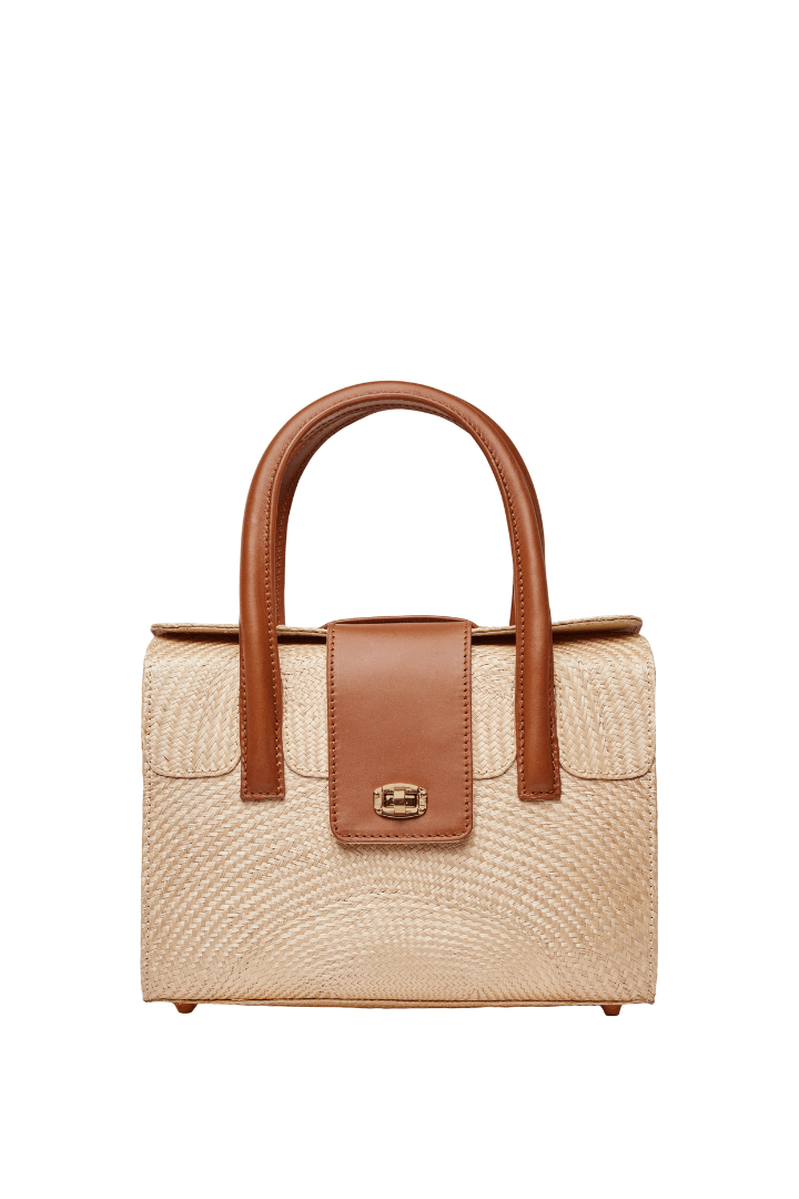 Ce mini-sac porte-documents structuré est réalisé en paille tressée à la main et doté de poignées en cuir italien et d'un fermoir d'inspiration vintage. Si vous appréciez la tendance du luxe discret, vous vous surprendrez à l'adopter au quotidien.