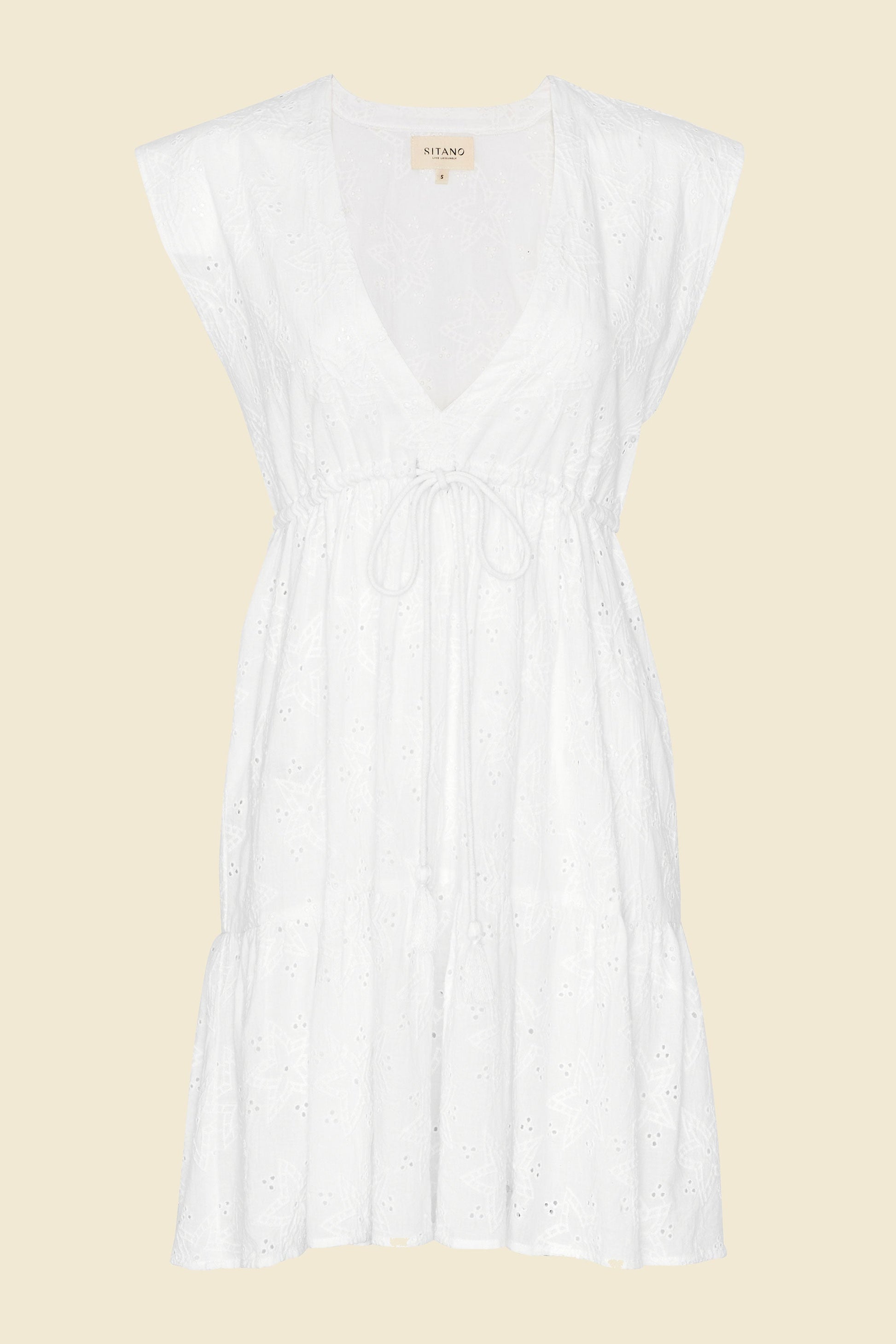 Découvrez la robe Ravello. Avec son décolleté en V profond, son tissu à œillets intemporel et son cordon de serrage à la taille orné de pompons faits main, la robe Ravello est une véritable affaire de détails. Associée à votre maillot de bain préféré, cette mini-robe pleine de fraîcheur fera des envieux.