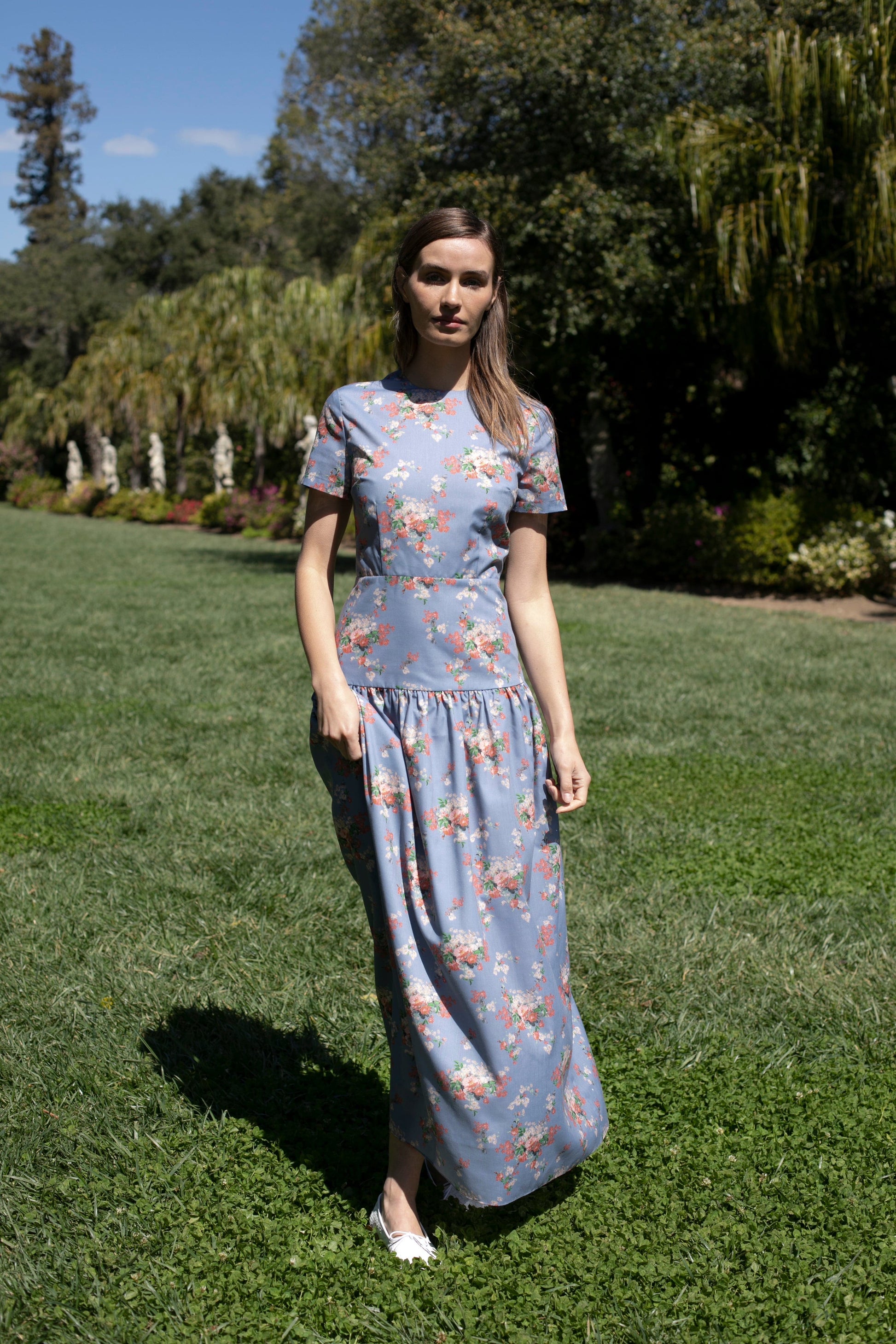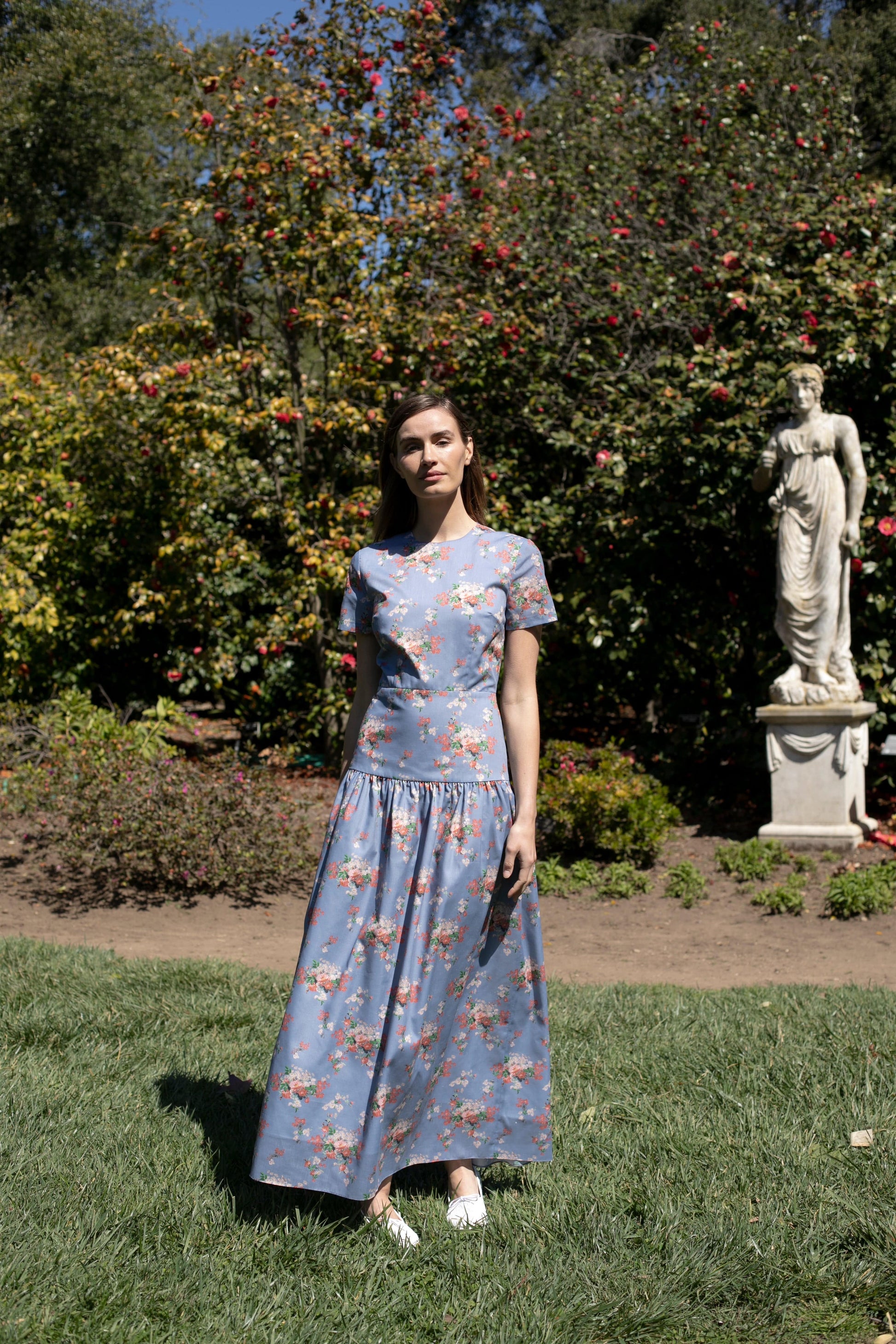 Faisant partie de la collection capsule printemps Damaris Bailey x Caitlin Wilson, la robe Gardenia ajoute une touche moderne avec son décolleté bijou, sa coupe fluide et facile et son imprimé somptueux conçu à la main par Damaris & Caitlin pour la collaboration.