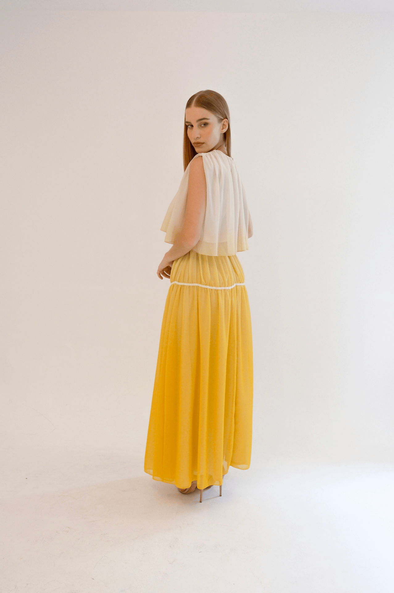Le haut Arum est un superbe crop top en mousseline dégradée, conçu pour s'harmoniser parfaitement avec la jupe assortie. Son effet ombré crée un look harmonieux et captivant, tandis que les épaules froncées apportent une touche de sophistication et confèrent au haut une belle fluidité. Idéal pour créer une tenue harmonieuse et élégante, le haut Arum s'associe parfaitement à la jupe assortie pour un look à la fois élégant et naturellement chic.