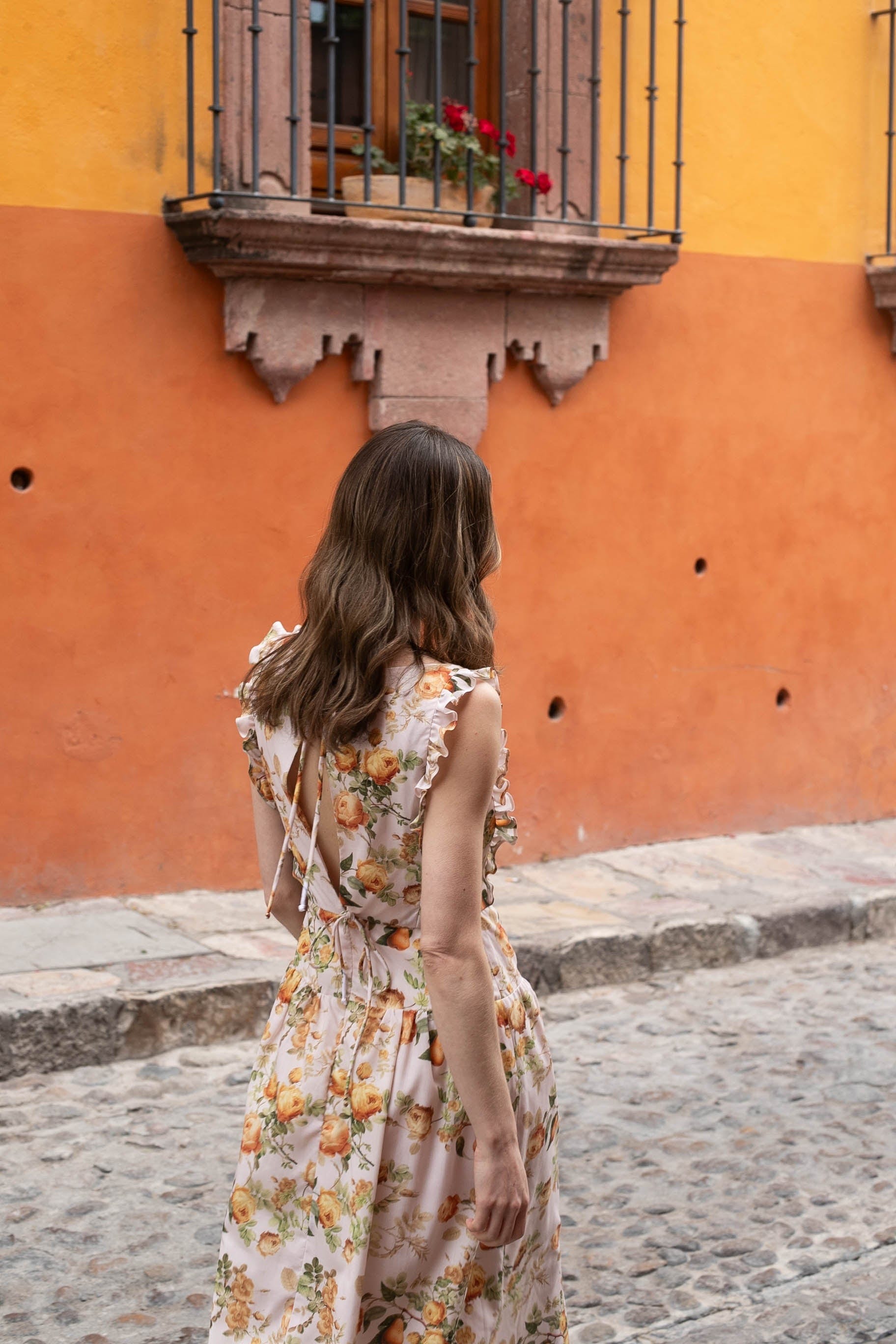 La robe Aurora est la robe en coton légère et aérienne qu'il vous faut pour le printemps. Ses roses et poires dorées chaleureuses, sur fond ivoire doux, évoquent l'élégance des maîtres hollandais du XVIIe siècle, apportant une touche de romantisme d'antan à une silhouette moderne. De délicats volants encadrent le corsage, tandis qu'un dos nu noué apporte une touche de séduction. Sa silhouette fluide tombe naturellement sur une longueur midi gracieuse, évoquant la douceur de la saison. Avec sa féminité classique, l'Aurora est parfaite pour les fêtes printanières, les soirées chaudes ou les escapades ensoleillées. Associez-la à des sandales délicates et à des bijoux minimalistes pour un look décontracté et raffiné.