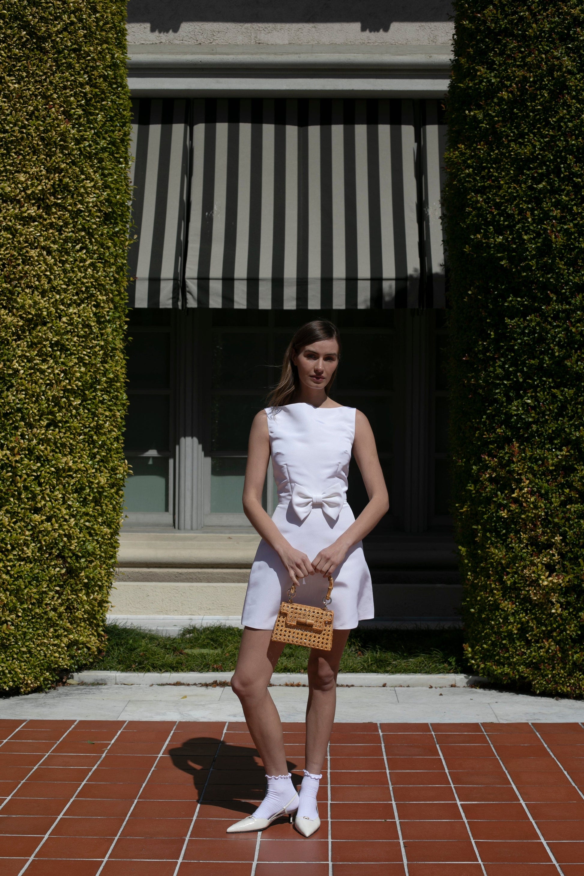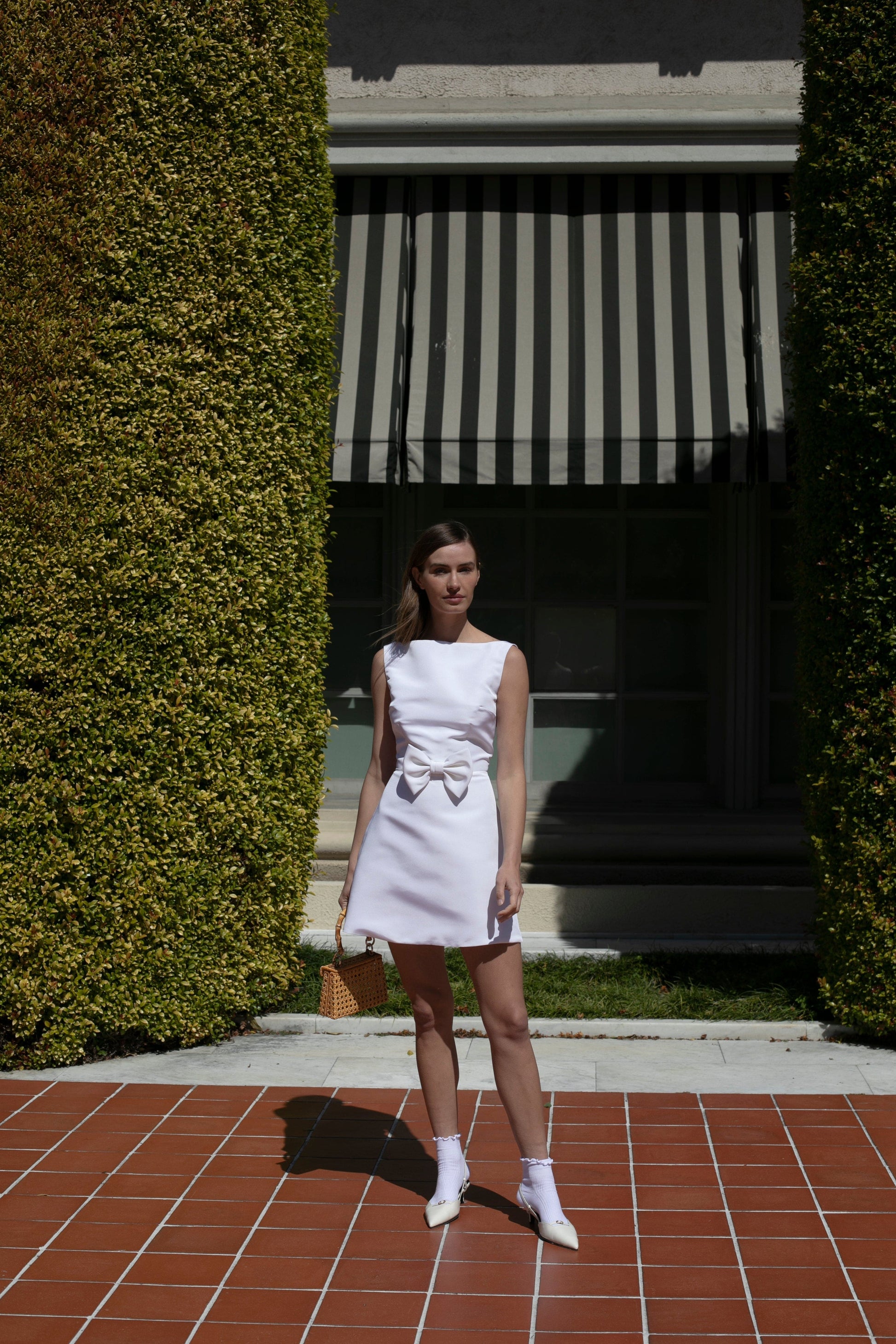 Issue de la collection capsule printemps Damaris Bailey x Caitlin Wilson, la robe Margo revisite une silhouette classique avec modernité. Dotée d'une encolure bateau, d'une taille cintrée ornée d'un nœud et d'une mini-jupe trapèze, la robe Margo est élégante et flatteuse pour les grandes occasions du printemps et de l'été. La robe Margo en Magnolia a été spécialement conçue pour les mariées.